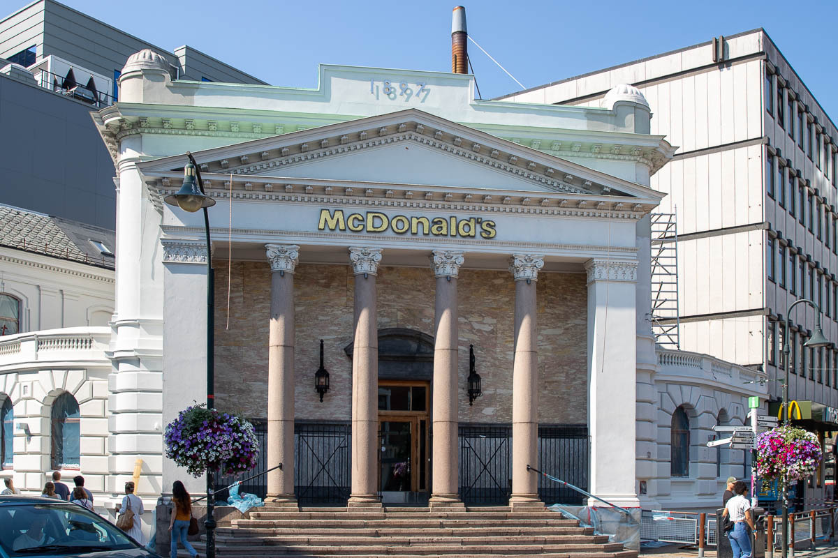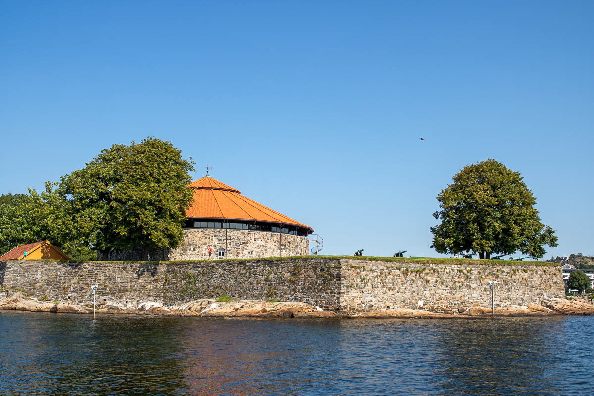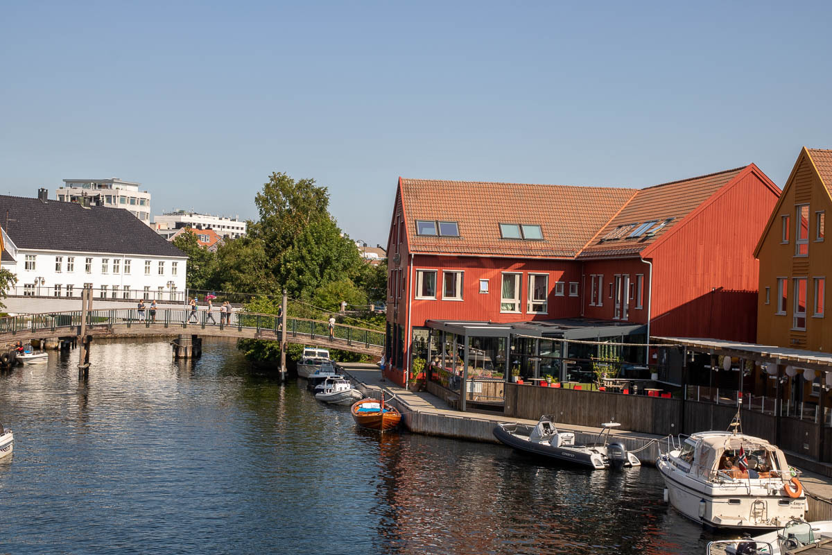 Nach einem ausgiebigen Frühstück haben wir uns auf den Weg nach Kristiansand gemacht. Zum ersten Mal mussten wir mit unserem Wohnmobil einen Parkplatz in der Stadt suchen. Wie sich gezeigt hat, muss man sich mit einem fast 7,50m langen Gefährt etwas durchmogeln. Letztendlich haben wir aber einen Parkplatz nahe am Zentrum am Bahnhof/Hafen gefunden. Wir erkundeten den Hafen und die Innenstadt. Außerdem besuchten wir den „Kristiansand Domkirke“, die außen allerdings momentan renoviert wird und die Festung „Christiansholm Festning“. Ein Bild der sehenswerten Fassade vom McDonalds haben wir ebenfalls gemacht. Bevor es dann weiterging, stärkten wir uns noch bei einem Kaffee.