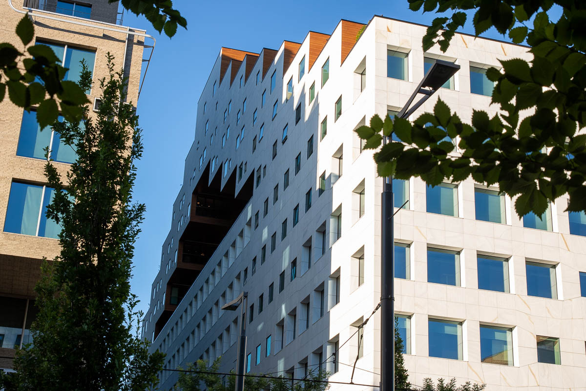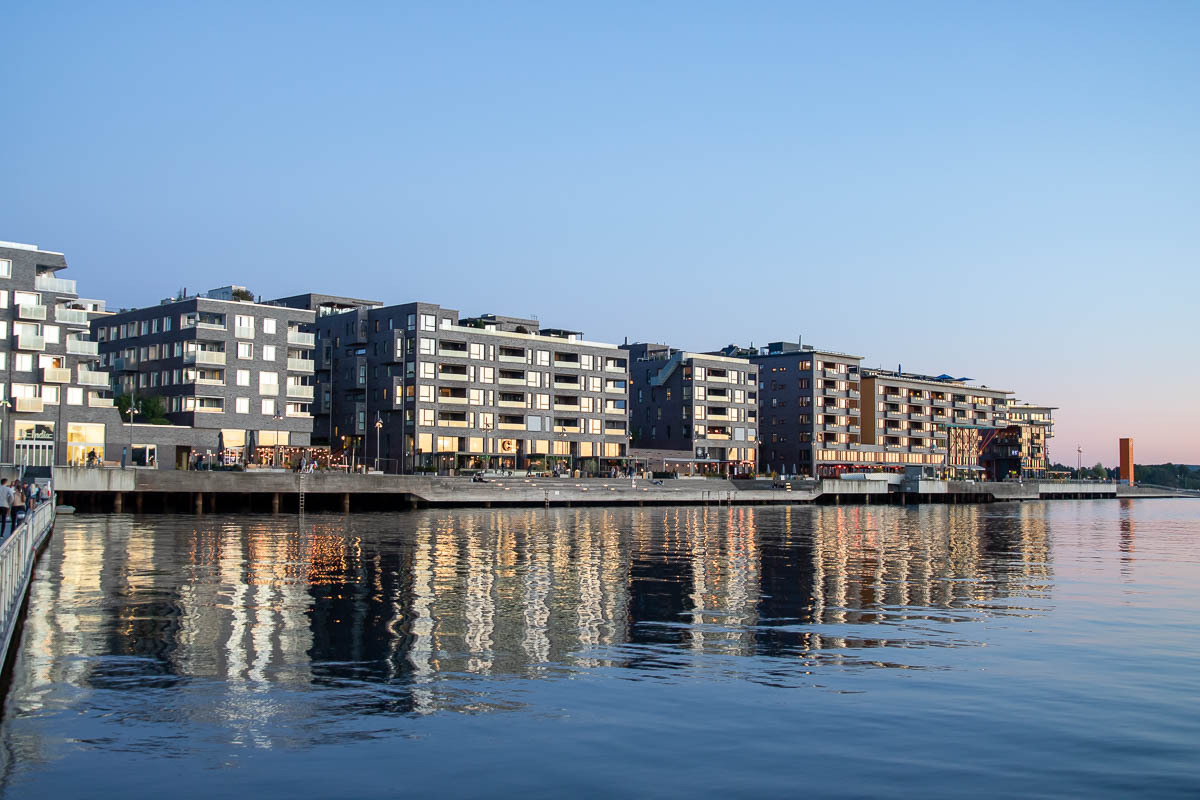 Auf die andere Seite des Hafens machten wir uns danach auf. Dort wurden und werden viele neue Häuser gebaut, die sehr interessant ausschauen, sich aber gut in das Stadtbild einfügten. Am Ende der Promenade entspannten wir dann noch etwas in der Abendsonne. Einige abgehärtete Osloer nutzen den Platz dort für eine Schwimmrunde, uns wäre das Wasser dort aber deutlich zu kalt gewesen.